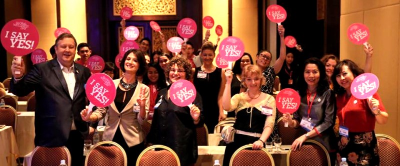 И теперь распространяет их по всему миру. Она объездила много стран и продолжает путешествовать, принимая участие в конгрессах и конференциях для распространения своей идеи, идеи здоровья и хорошего самочувствия. Она создала эмблему — круглые таблички в бело-розовой гамме, которые она распространяет вместе со своей идеей. Надпись на них гласит: «Скажем да! Всемирному дню хорошего самочувствия!»
